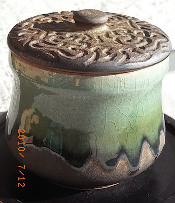 所以我買了這組綠裂紋釉茶倉,這組茶倉價格不貴,加上老闆主要是買賣字畫,順便賣個人情給玩陶的大姐,半買半相送地隨興賣給我。